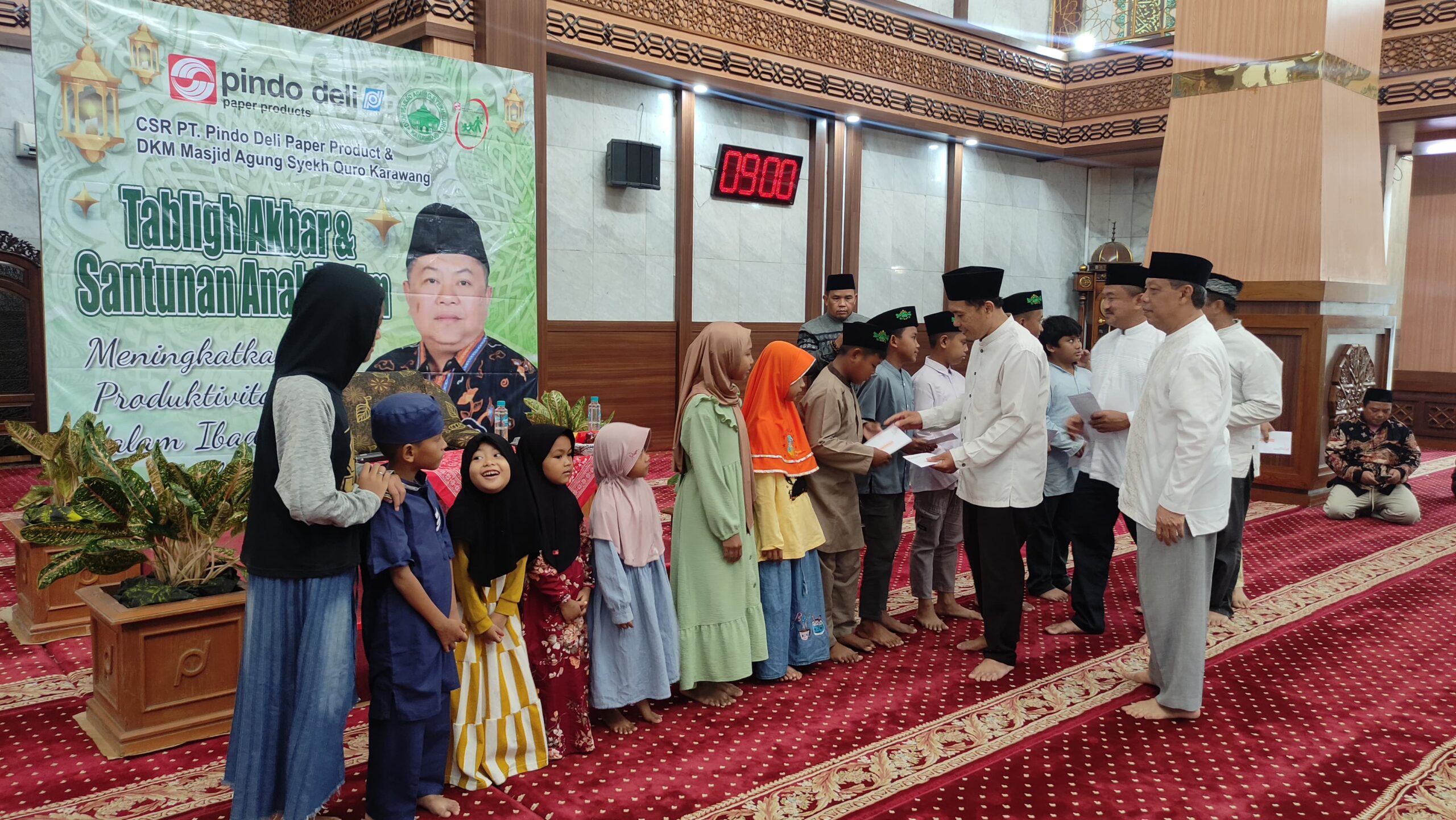 KARAWANG, Jabartime.com – PT Pindo Deli Pulp and Paper Mills (Pindo Deli) Karawang, unit usaha APP Group menggelar Tabligh Akbar dan Santunan Anak Yatim Piatu di Masjid Agung Syekh Quro Karawang dalam rangka menyalurkan Corporate Social Responsibility (CSR) PT. Pindo Deli Pulp Paper Mills.