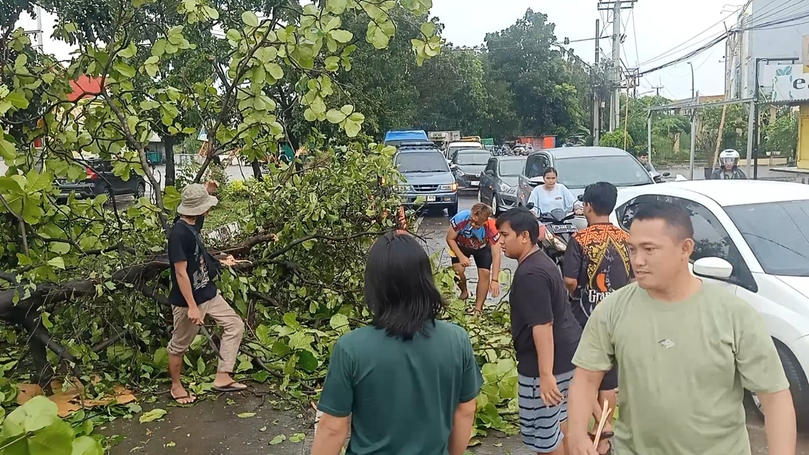 Saksi mata di lokasi kejadian, Aceng (25) mengungkapkan, kejadian terjadi saat hujan lebat disertai petir dan angin puting beliung pada Jum’at, (18/4/2025) sekitar pukul 14.30 WIB yang mengakibatkan sejumlah pohon tumbang dan menyebabkan kemacetan sekitar 45 menit lamanya.
