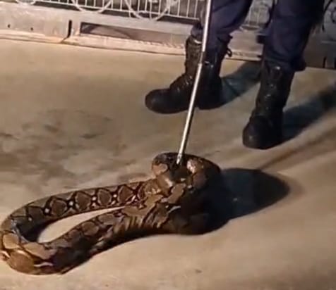 Kemunculan hewan melata itu membuat geger warga sekitar, terlebih karena di lokasi terdapat beberapa anak anjing yang diduga menjadi incaran sang predator.