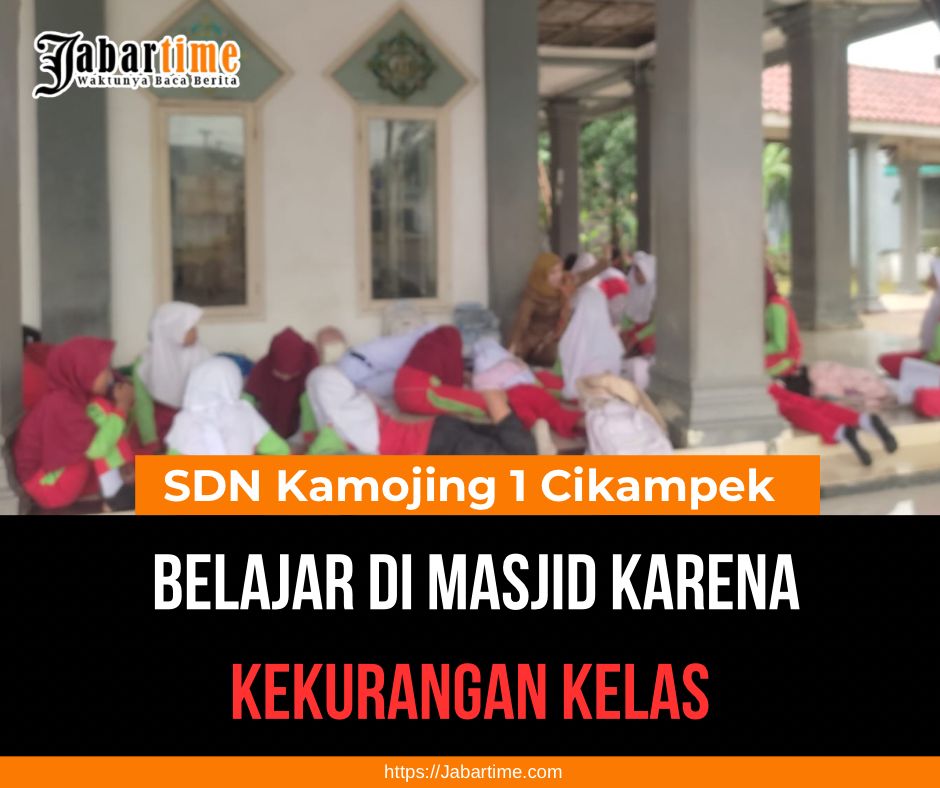 Karawang, Jabartime.com — Puluhan siswa SDN Kamojing I, Kecamatan Cikampek, terpaksa mengikuti kegiatan belajar mengajar di teras Masjid Jami Nurul Hidayah, sekitar Kantor Desa Kamojing akibat kekurangan ruang kelas.