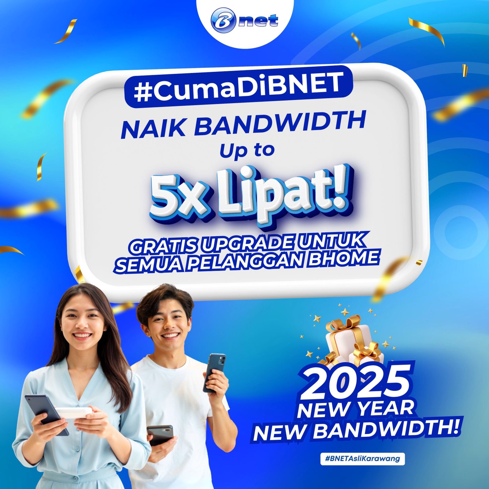 KARAWANG, JABARTIME.COM – Dalam langkah inovatif untuk meningkatkan pengalaman pelanggan, BNET, penyedia layanan internet terkemuka, meluncurkan loyalty program eksklusif bertajuk “Free Upgrade”. Program ini memberikan peningkatan kecepatan internet hingga 5 kali lipat bagi pelanggan setia BHOME tanpa dikenakan biaya tambahan.