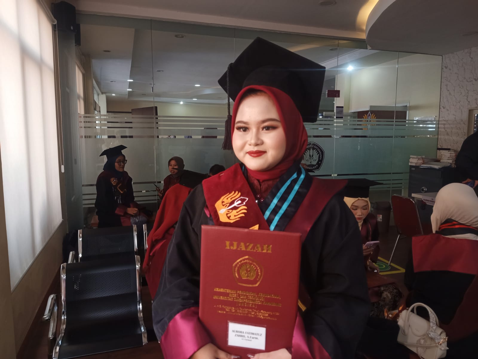 KARAWANG, Jabartime.com – “Saya ingin suatu hari bisa memakaikan toga ini ke ayah saya.” Kalimat sederhana tapi penuh makna ini diucapkan oleh Aurora Farimatuz Zahro, mahasiswi Program Studi S1 Farmasi Universitas Singaperbangsa Karawang (UNSIKA), yang baru saja dinobatkan sebagai lulusan terbaik dengan IPK 3,88.