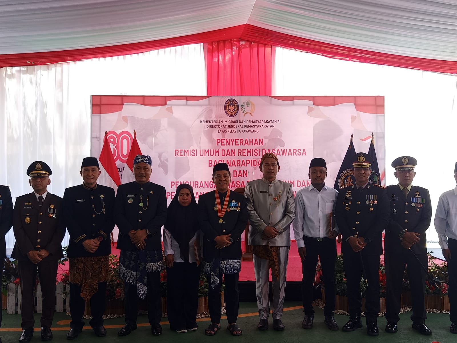 KARAWANG, Jabartime.com – Sebanyak 928 warga binaan Lembaga Pemasyarakatan (Lapas) Kelas IIA Karawang menerima remisi umum pada peringatan HUT ke-80 Kemerdekaan Republik Indonesia, Minggu (17/8/2025). Selain itu, 957 orang juga memperoleh remisi dasawarsa yang hanya diberikan setiap 10 tahun sekali.
