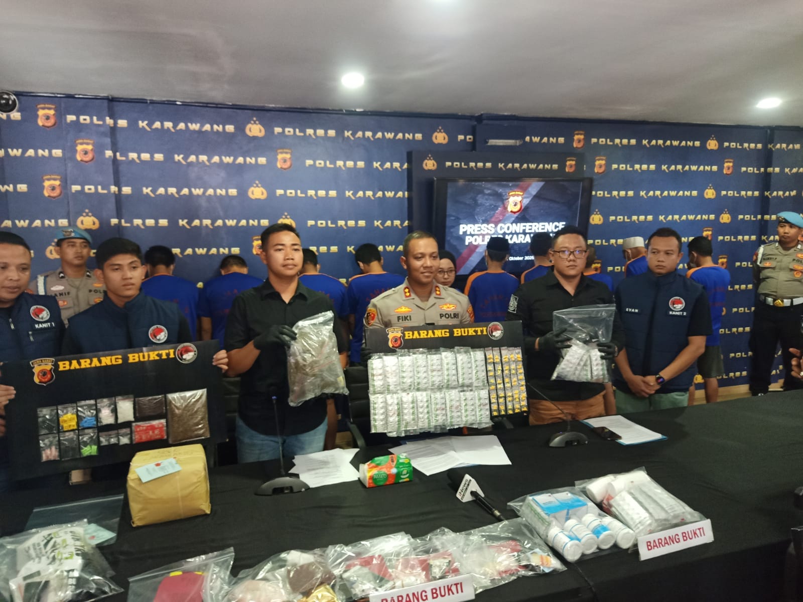 “Selama dua bulan terakhir, Satresnarkoba Polres Karawang berhasil mengungkap 28 kasus dengan 32 tersangka. Rinciannya, 20 kasus sabu dengan 24 tersangka, 3 kasus ganja dengan 3 tersangka, 2 kasus tembakau sintetis, serta 3 kasus obat keras tertentu (OKT) dengan 3 tersangka,” kata dalam konferensi pers, Senin (28/10/25).